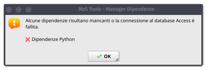 Al primo avvio dopo l’installazione di MzS Tools, lo strumento rileverà la mancanza delle librerie Python: