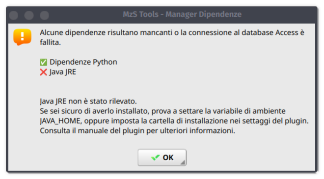 di installazione nelle Impostazioni di MzS Tools, oppure impostare la variabile di ambiente JAVA_HOME.