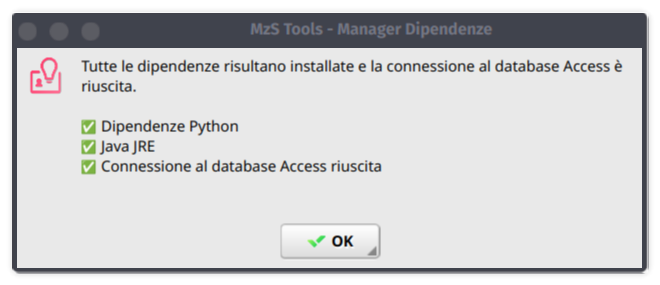 Le funzionalità di importazione ed esportazione dati di MzS Tools da/verso database Microsoft Access (database «CdI_Tabelle.mdb» definito dagli Standard MS), richiedono l’installazione di alcune componenti aggiuntive: