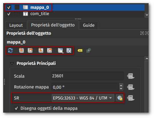 elementi «mappa» dei layout di stampa; è possibile inoltre impostare esplicitamente un sistema di riferimento diverso da